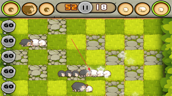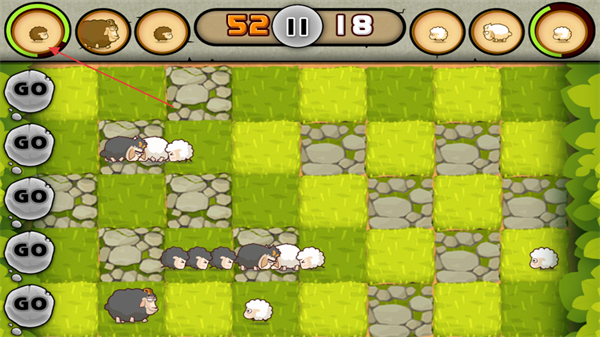 2、在比賽開(kāi)始后,點(diǎn)擊不同道路上的GO按鈕可以釋放綿羊進(jìn)入賽道。