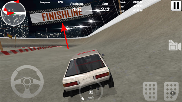 3、沖向終點(diǎn)線(xiàn)FINISHLINE時(shí),需保持賽車(chē)速度和方向的穩(wěn)定,全力沖刺以提升比賽排名。