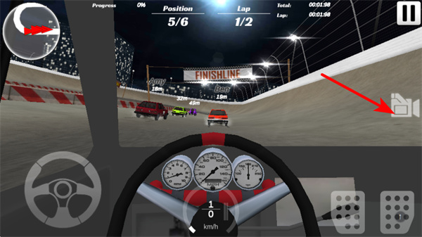 4、點(diǎn)擊攝像頭按鈕可切換視角,切換時(shí)根據(jù)自身駕駛習(xí)慣選擇,助力觀(guān)察賽道車(chē)輛位置。