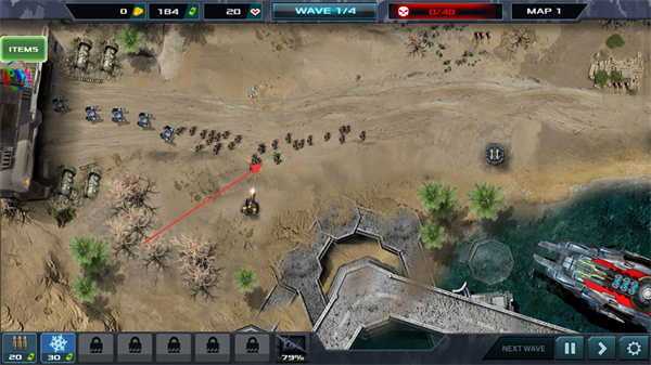 3、在關(guān)鍵位置布置防御塔,阻擋敵人前進(jìn),逐步擴(kuò)大防御陣線。