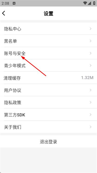 3、在設置頁面點擊賬號與安全,進入安全中心頁面。
