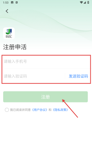 4、輸入手機(jī)號碼和驗(yàn)證碼,點(diǎn)擊注冊按鈕,完成賬號注冊操作。