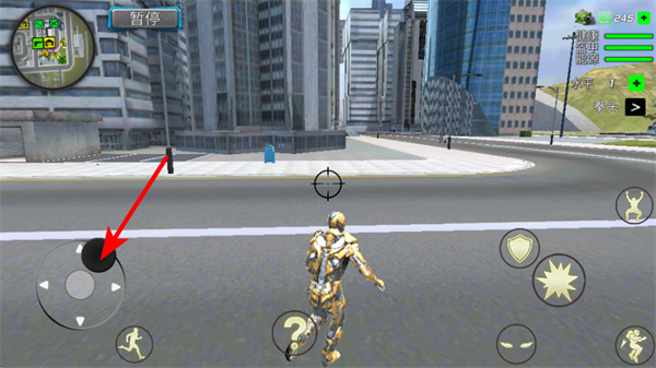 4、游戲中滑動虛擬搖桿可操控角色移動,移動時需結合城市場景布局,規(guī)劃路線以完成任務躲避敵人。