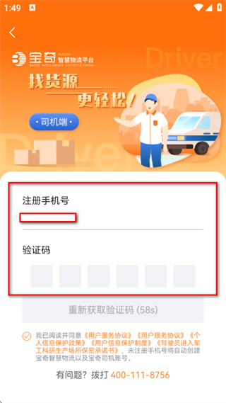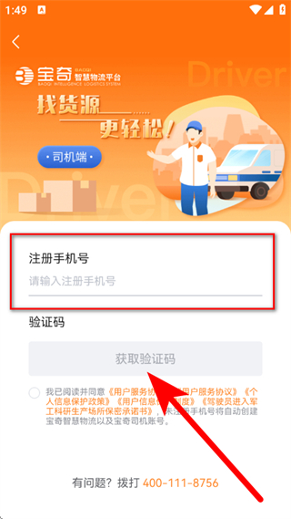 3、在登錄頁面,輸入注冊手機號,點擊獲取驗證碼。