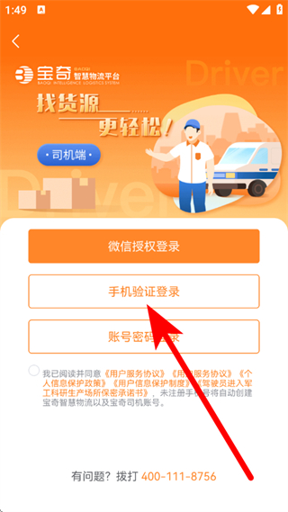 2、在選擇登錄頁面,點擊手機驗證登錄,進入登錄頁面。
