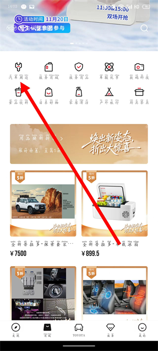 2、在商城頁面,點擊汽車周邊頻道,進入汽車周邊頻道。