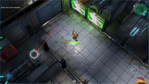 1、進入游戲后我們將在太空中追捕逃犯,通過左下角方向鍵控制角色開始探索。