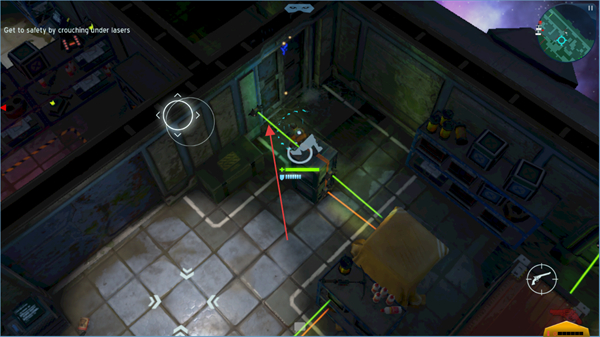 2、遇到上方出現(xiàn)的激光陷阱,可以點擊屏幕讓角色蹲下行走通過。