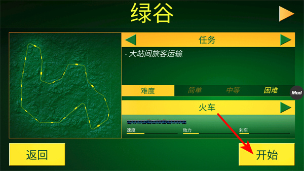 1、如綠谷和任務(wù)難度,點(diǎn)擊開始按鈕可開啟火車運(yùn)輸任務(wù),需結(jié)合自身操作水平,建議從簡(jiǎn)單難度入手。