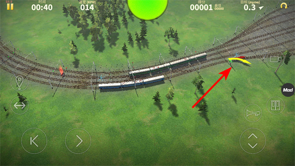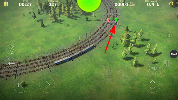 3、遇到軌道岔口時(shí),需注意綠色箭頭指示的軌道方向,行駛時(shí)提前規(guī)劃路線,避免火車駛?cè)脲e(cuò)誤軌道。