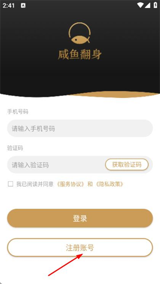 2、在登錄頁面點擊注冊賬號,進(jìn)入注冊賬號頁面。