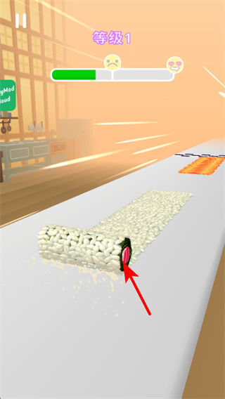 2、制作壽司時需操控壽司卷在臺面上滾動,滾動時需避開障礙物,確保壽司卷能順利包裹食材。