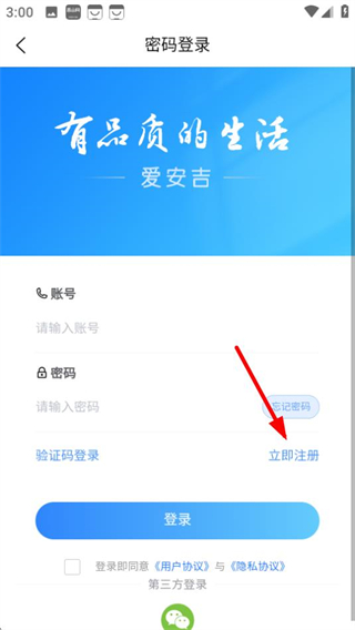 2、在密碼登錄頁面,點(diǎn)擊立即注冊(cè)選項(xiàng),進(jìn)入注冊(cè)頁面。