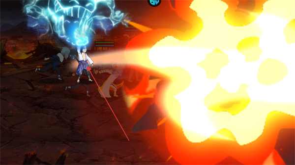 2、切換忍者角色如佐助,釋放雷電類技能,持續(xù)打擊敵方單位。
