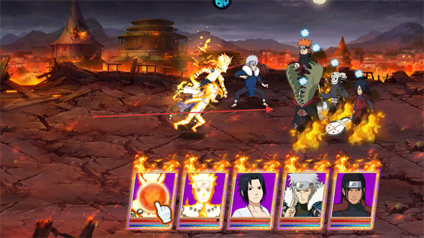 3、選擇技能卡牌,指揮對應(yīng)忍者如鳴人發(fā)起攻擊,調(diào)整陣型應(yīng)對敵方攻勢。