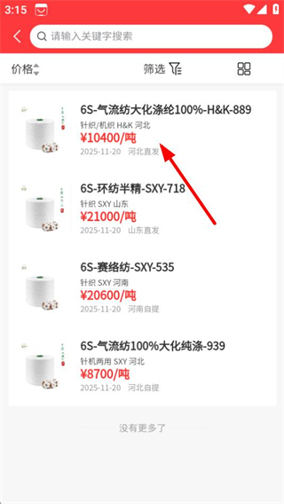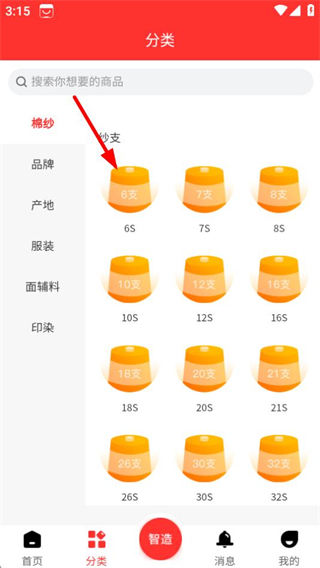 2、在分類頁面,選擇目標紗支,進入對應商品列表頁面。