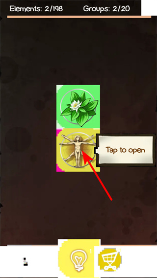 1、游戲中點(diǎn)擊Tap to open標(biāo)識(shí)的元素組,解鎖新元素分類,關(guān)注元素組的主題,助力后續(xù)元素合成探索。