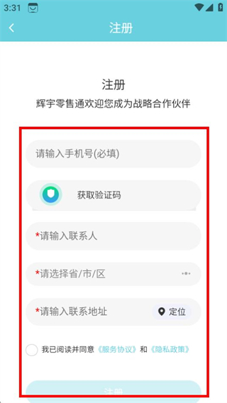 3、在注冊(cè)頁(yè)面,填寫(xiě)信息,勾選協(xié)議后完成注冊(cè)操作。