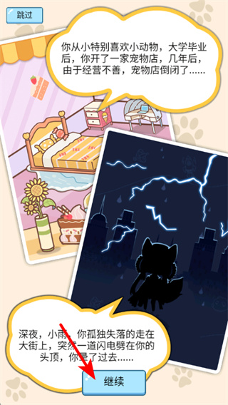 1、游戲開局點擊繼續(xù)可推進劇情,了解主角的背景故事,這對理解游戲玩法和任務目標很有幫助。