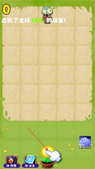 1、拖動下方盆栽中的花花進行種植,對僵尸造成攻擊傷害擊退僵尸。