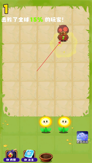 2、僵尸身前的牌子代表著這個僵尸的生命值,只有不斷合成花花才能擊敗他們。