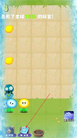 4、當(dāng)僵尸已經(jīng)到達面前非常危險的情況下,點擊左下角的冰凍道具進行使用。