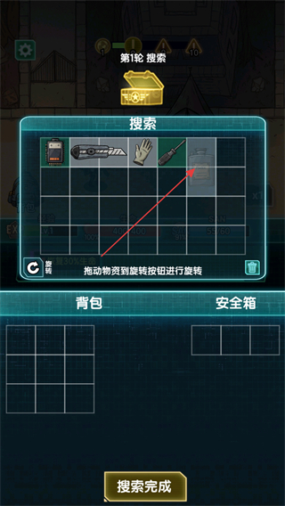 4、通過(guò)點(diǎn)擊搜索到的物資進(jìn)行獲取,將物資拖動(dòng)到背包或安全箱進(jìn)行存放。