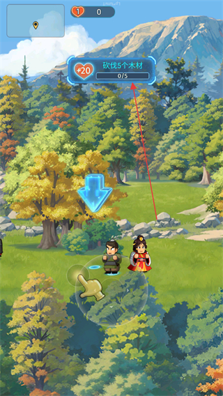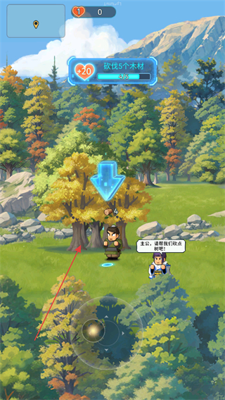 1、根據(jù)任務(wù)提示砍伐木材,移動角色到樹木處,完成砍伐以獲取資源,積累進(jìn)度。