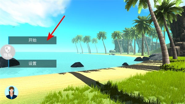 1、進入游戲后,點擊開始開啟荒島生存之旅,欣賞海島風(fēng)光,提前熟悉游戲的生存環(huán)境。