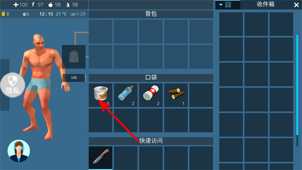 4、點擊罐頭類物品可查看其屬性,合理使用食物資源能維持角色生命,確保在荒島順利生存。