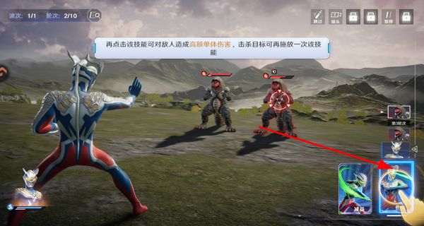 3、點(diǎn)擊頭像釋放終結(jié)技,利用滿能量值的優(yōu)勢(shì),對(duì)怪獸造成巨額傷害,提升終結(jié)怪獸能力。