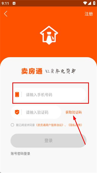 2、在登錄頁面填寫手機號后,點擊獲取驗證碼按鈕獲取短信驗證碼。