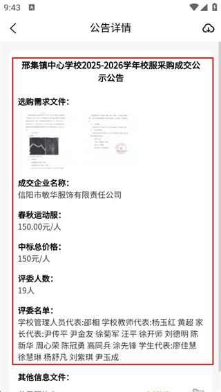 3、在公告詳情頁(yè)面,查看采購(gòu)公告的選購(gòu)需求文件、成交企業(yè)、價(jià)格等詳細(xì)信息。