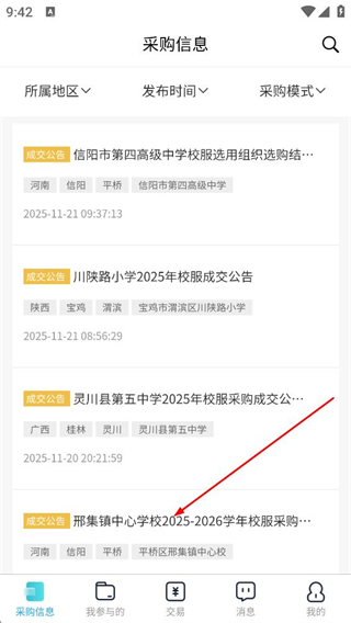 2、在采購(gòu)信息頁(yè)面,點(diǎn)擊目標(biāo)采購(gòu)公告,進(jìn)入公告詳情頁(yè)面。