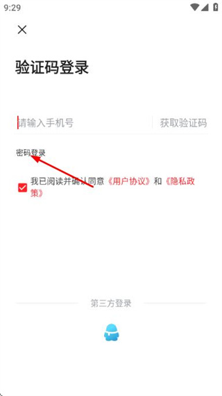 3、在驗證碼登錄頁面點擊密碼登錄,進入密碼登錄頁面。