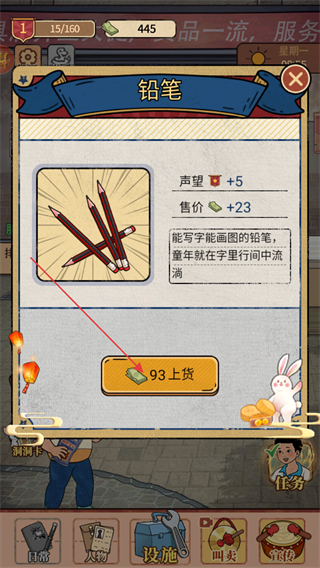 4、查看新的商品信息,主要關(guān)注售價和能夠給攤位帶來的聲望值,點擊下方上貨按鈕進行上架。