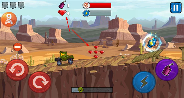 1、在場景中駕駛車輛,收集鉆石資源,積累數(shù)量,為游戲進(jìn)程提供支持。