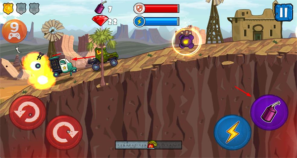 3、攻擊敵方車輛,推進(jìn)關(guān)卡進(jìn)程,獲取勝利,積累更多資源。