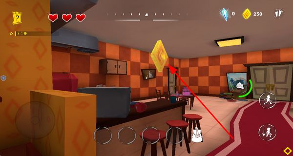 3、玩家在在房間中收集黃色菱形金幣,獲取資源,用于解鎖區(qū)域或提升能力。
