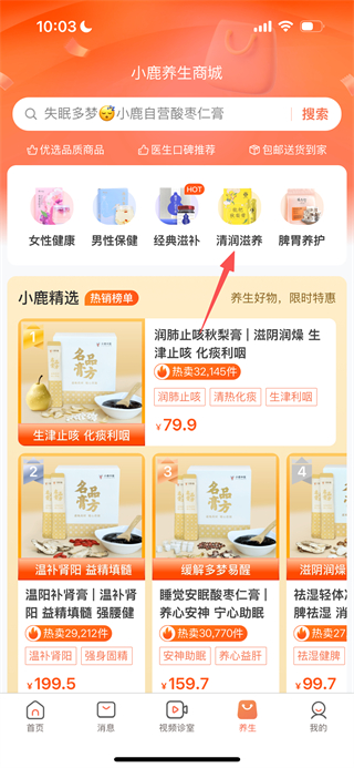 2、在小鹿養(yǎng)生商城頁面,點(diǎn)擊目標(biāo)分類,進(jìn)入對應(yīng)商品列表頁面。