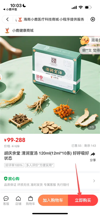 4、在微信小程序,點(diǎn)擊立即購買按鈕,即可購買該藥品。