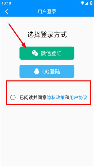 3、在用戶登錄頁面,勾選協(xié)議后選擇微信登陸,即可登錄賬號。