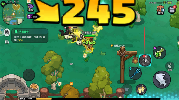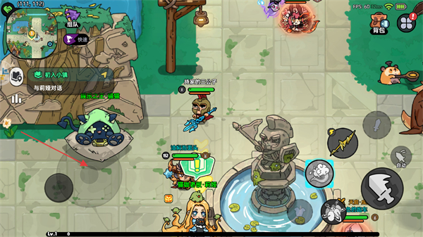 4、出了地圖安全區(qū)之后將會(huì)遇到怪物,通過(guò)點(diǎn)擊右下角的攻擊技能按鍵進(jìn)行清理怪物。