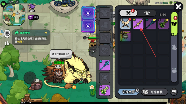 2、打開(kāi)右上角的角色背包,查看背包內(nèi)有無(wú)可裝備的武器等物資。
