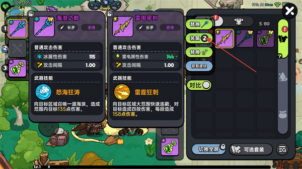 3、點(diǎn)擊武器查看武器的技能屬性等,可以進(jìn)行替換或裝備在空的武器欄位上。