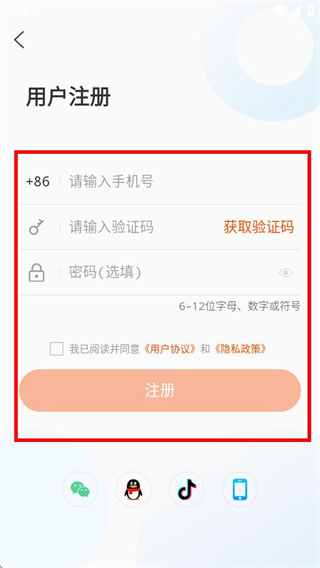 4、在用戶注冊(cè)頁(yè)面,填寫(xiě)信息,勾選協(xié)議后點(diǎn)擊注冊(cè),完成賬號(hào)注冊(cè)。