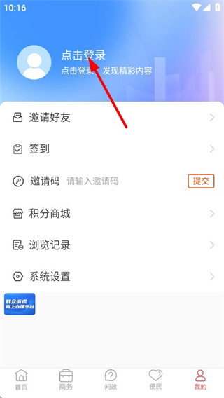 2、在個(gè)人頁(yè)面,點(diǎn)擊點(diǎn)擊登錄區(qū)域,進(jìn)入用戶登錄頁(yè)面。
