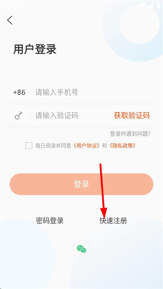 3、在用戶登錄頁(yè)面,點(diǎn)擊快速注冊(cè)選項(xiàng),進(jìn)入用戶注冊(cè)頁(yè)面。