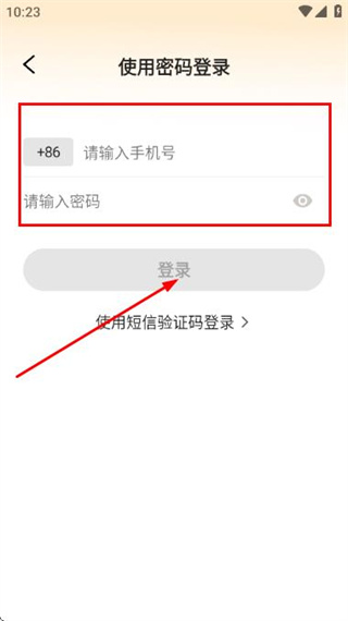 3、在使用密碼登錄頁面填寫手機號和密碼后,點擊登錄完成賬號登錄操作。