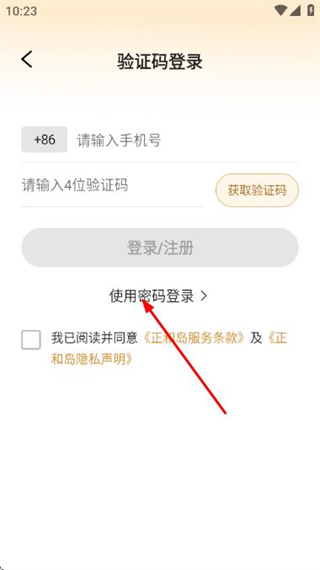 2、在驗證碼登錄頁面點擊使用密碼登錄,進入使用密碼登錄頁面。